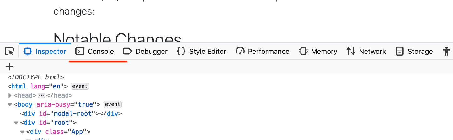 Inspect Element or Inspect (Firefox and Chrome).Console tab:After that, you can start typing code! For now, type console.log("hello").